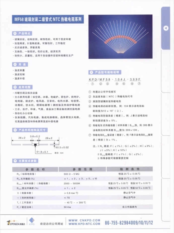 阻值精度、B值精度高,可靠性好,工作穩(wěn)定